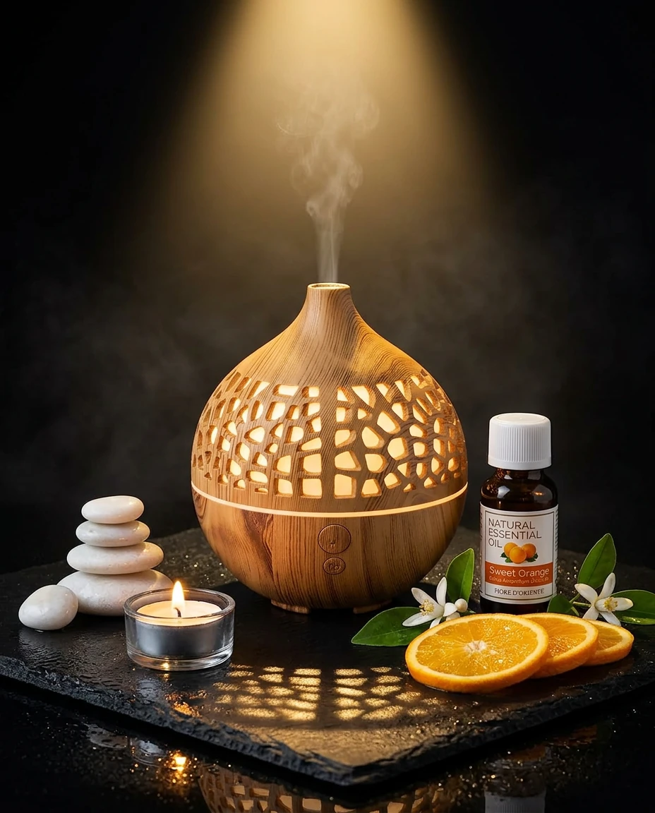 Etherische oliën zijn er in vele soorten, elk met een eigen karakter. Bloemige oliën zoals lavendel en ylang-ylang zijn rustgevend en ideaal voor de slaapkamer. Citrusgeuren zoals sinaasappel en bergamot zijn opwekkend, vrolijk en stemming verbeterend. Houtachtige geuren zoals sandelhout en wierook geven een aardse, meditatieve sfeer. Frisse kruidengeuren zoals eucalyptus, pepermunt en tea tree werken zuiverend en concentratiebevorderend. Warme specerijengeuren zoals kaneel, gember en vanille creëren een knus en verwarmend gevoel – perfect voor de wintermaanden.