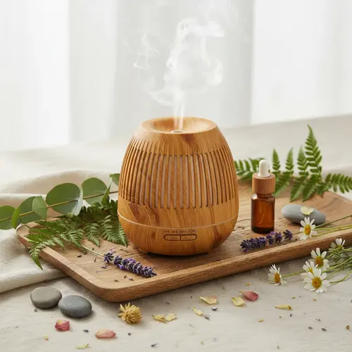 Ontdek aroma diffusers voor etherische oliën. Ultrasone vernevelaars in prachtige designs: van natuurlijk bamboe tot elegant keramiek. Met LED-verlichting in 7 kleuren en stille werking voor ontspannende aromatherapie thuis of op kantoor.