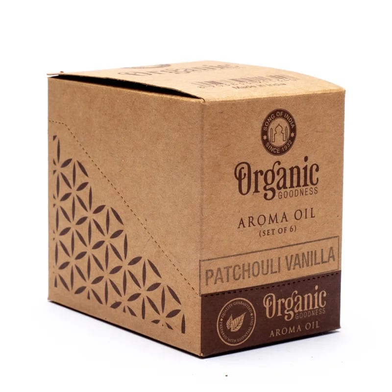 De Organic Goodness Patchouli Vanille aroma olie combineert twee van de meest geliefde en meest iconische basisnoten in de geurwereld elk met een rijke geschiedenis en een eigen, onmiskenbaar karakter.