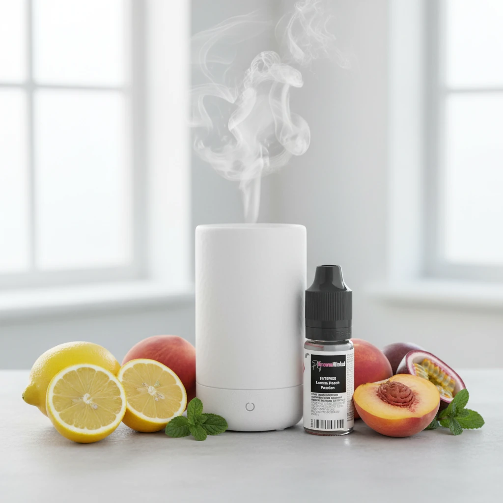 Deze smaakdruppels zijn uitstekend geschikt voor gebruik in aroma diffusers om je woon of werkruimte te vullen met een heerlijke fruitige geur met verkoelende menthol. Voor een aroma diffuser meng je een paar druppels van de PGAW Cool Lemon Peach Passion Drops met ongeveer 100-200 ml water, afhankelijk van de capaciteit van je diffuser. Begin met 3 tot 6 druppels voor kleine ruimtes zoals persoonlijke werkplekken of slaapkamers, en pas de dosering geleidelijk aan voor grotere ruimtes zoals woonkamers. De diffuser verspreid de geurolie op een veilige en effectieve manier door het water subtiel te vernevelen met ultrasone trillingen, waardoor een heerlijke fruitige ambiance ontstaat.