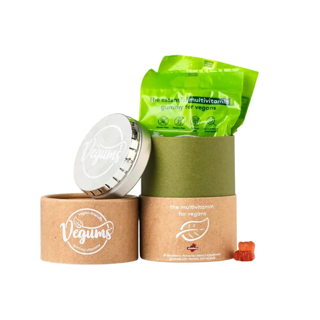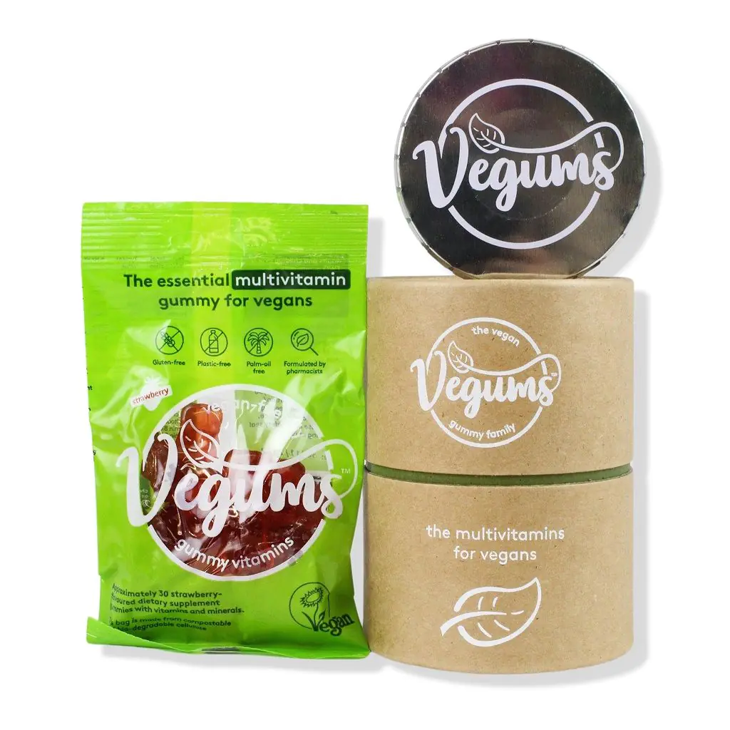 Vegums onderscheidt zich door een sterke focus op duurzaamheid en milieubewustzijn. Alle verpakkingen zijn volledig plasticvrij en kunnen worden gerecycled. Het starterspack wordt geleverd met een milieuvriendelijke kartonnen koker en een handig metalen bewaarblikje waarin de gummies kunnen worden bewaard. Deze duurzame verpakkingscomponenten kunnen eindeloos opnieuw worden gebruikt met de navulzakjes.
