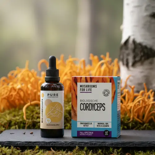 Cordyceps wordt steeds vaker ingezet naast andere functionele paddenstoelen als onderdeel van een bredere supplementenstrategie. Populaire combinaties zijn Cordyceps met reishi voor een evenwichtige routine, met lion's mane voor dagelijkse mentale helderheid, of met chaga voor een rijke antioxidantbasis. Dergelijke combinaties sluiten aan bij de holistische benadering die veel gebruikers van functionele paddenstoelen nastreven: niet de nadruk op één enkel stofje, maar een brede, gevarieerde basis van plantaardige voedingsstoffen die de algehele vitaliteit ondersteunen.